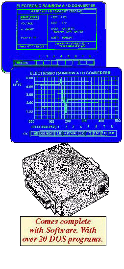 - Monitor eight seperate 8 bit analog inputs simultaneously and display them digitally or graphically.