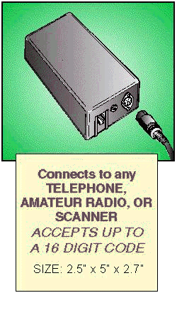Even hook to a scanner, and learn scores of emergency phone numbers. Also decodes tones heard on a tape recorder. Never before has such sophisticated gear been available to the public. Power requirement 9v DC. SIZE: 3.5" x 4" x 1"
